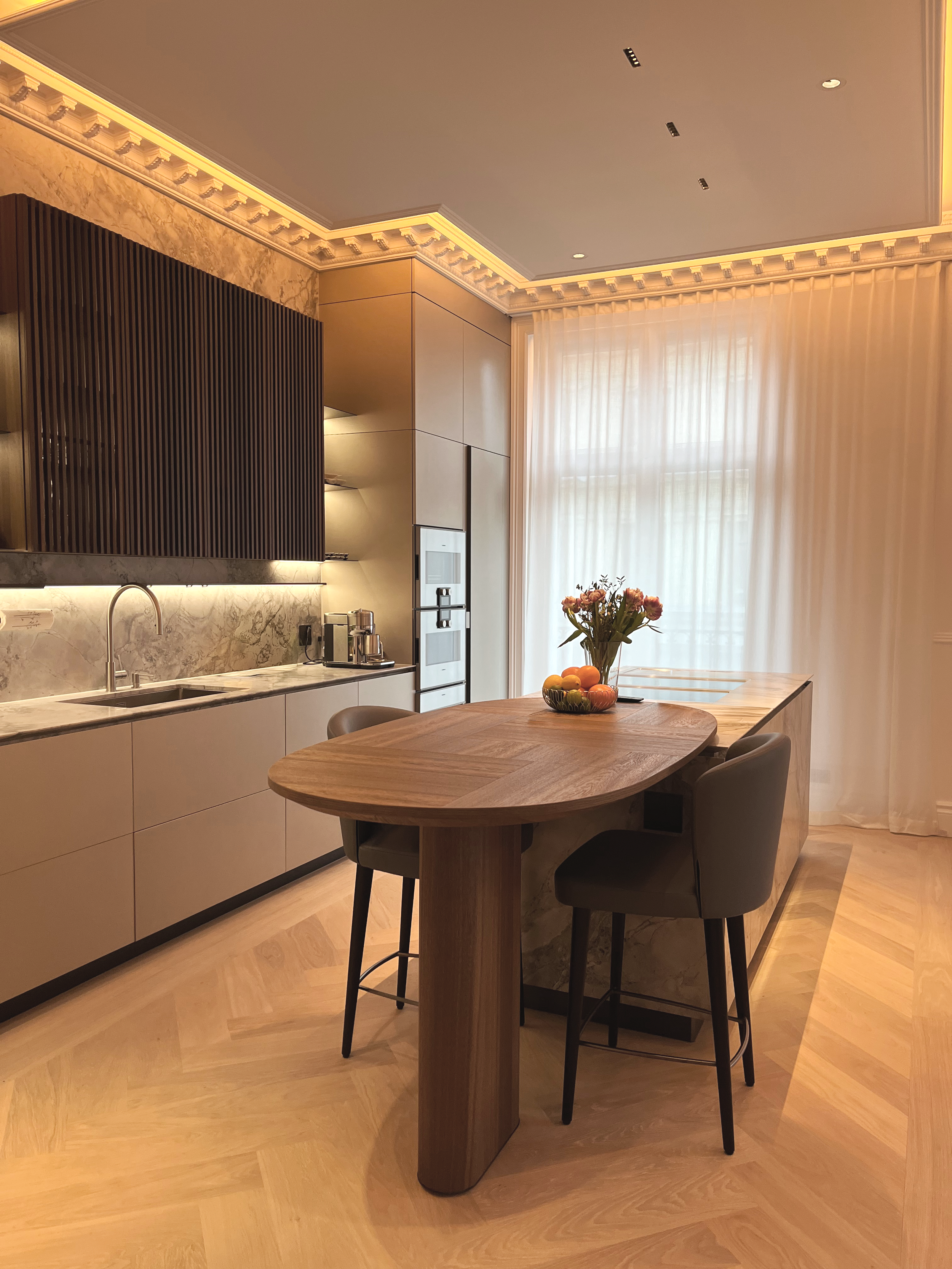 For each project, we start with a blank page and let our customers' wishes and desires determine the design of the project. We take care of the entire project by creating custom-made kitchens, bathrooms, and wardrobes, as well as designing walls and floors with marble and natural stone tiles.