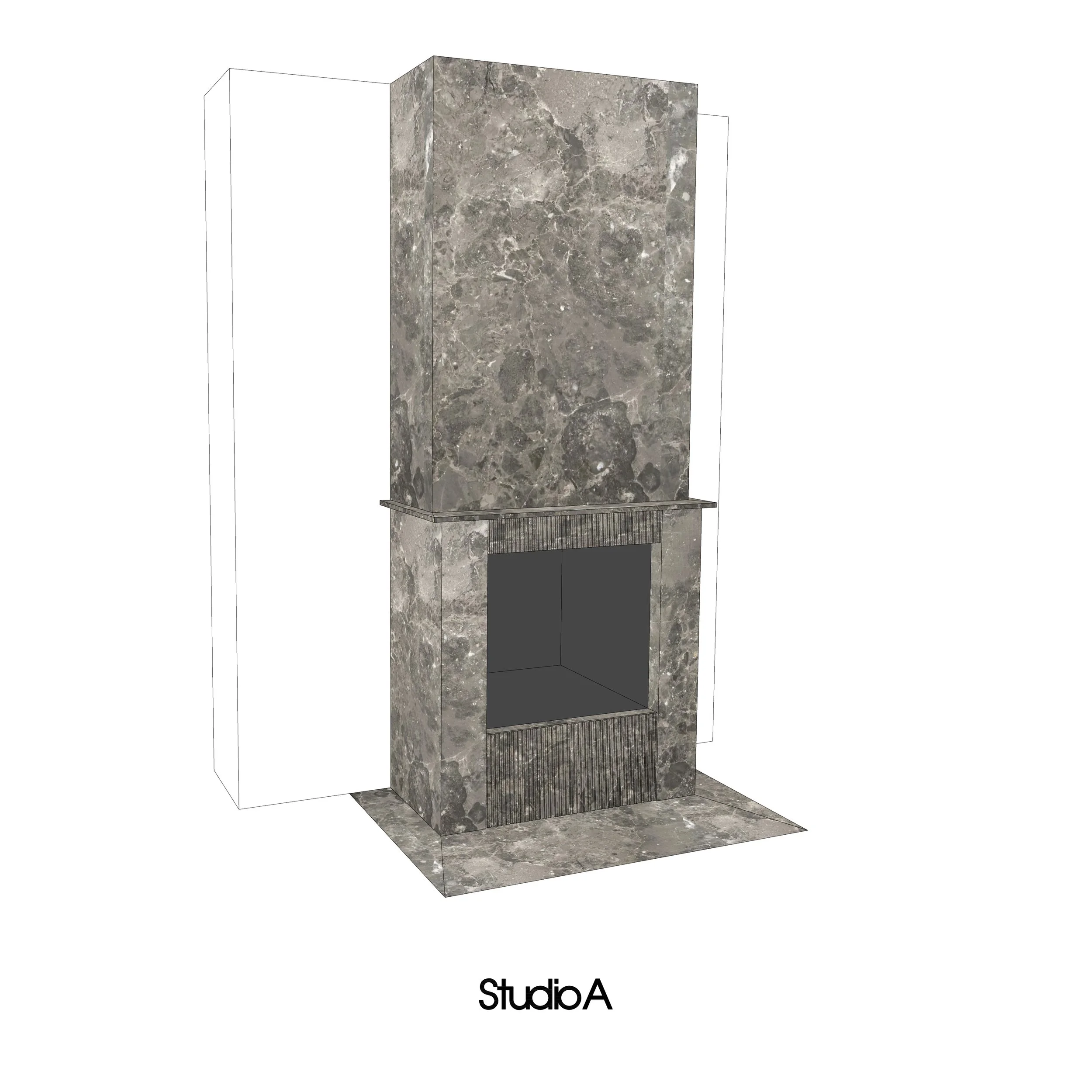 A bespoke fireplace crafted from natural Salvatori stone, combining timeless elegance with a warm, inviting atmosphere.
